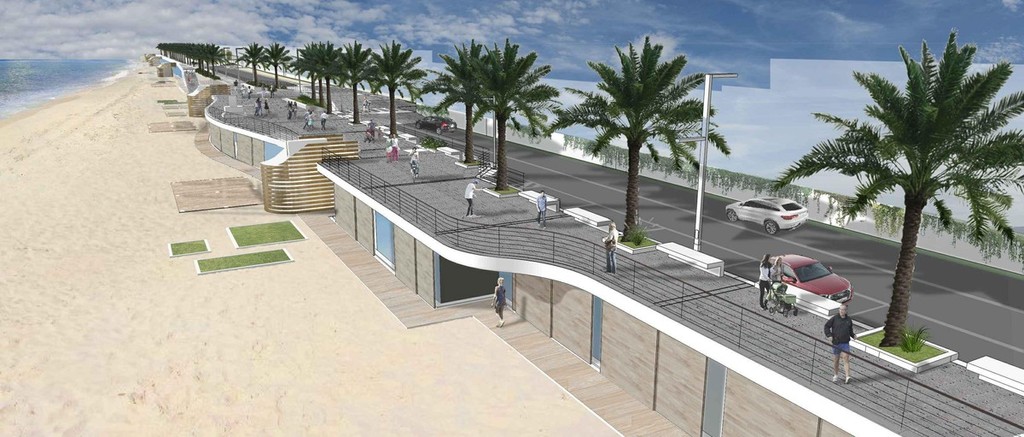 “Sulla base di ciò, abbiamo voluto elaborare un progetto aggregante, capace di ricostruire la continuità del fronte della costa, di inglobare e di dare una nuova veste architettonica alle realtà esistenti (come gli stabilimenti balneari, le sedute, gli slarghi e quant'altro) ed in alcuni casi di implementarli (con le nuove terrazze belvedere) aggiungendo elementi che ne migliorino l'accessibilità e quindi l'integrazione tra percorso pedonale e piano dell'arenile”.