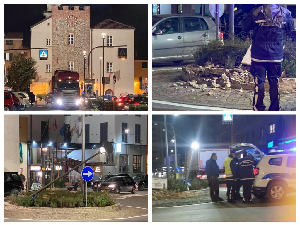 Cairo, camion danneggia la rotonda tra corso Italia e via Colla (FOTO)