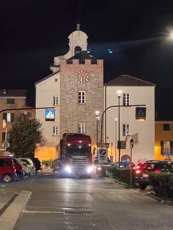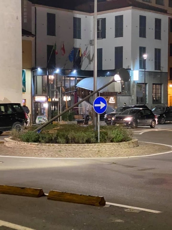 Secondo quanto riferito, l'autoarticolato avrebbe stretto troppo la curva andando così a frantumare parte della rotatoria e abbattendo il lampione posizionato all'interno dello spartitraffico