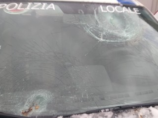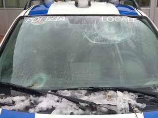Cadibona chiuso per gelicidio: un ramo sfonda il parabrezza dell'auto della polizia locale