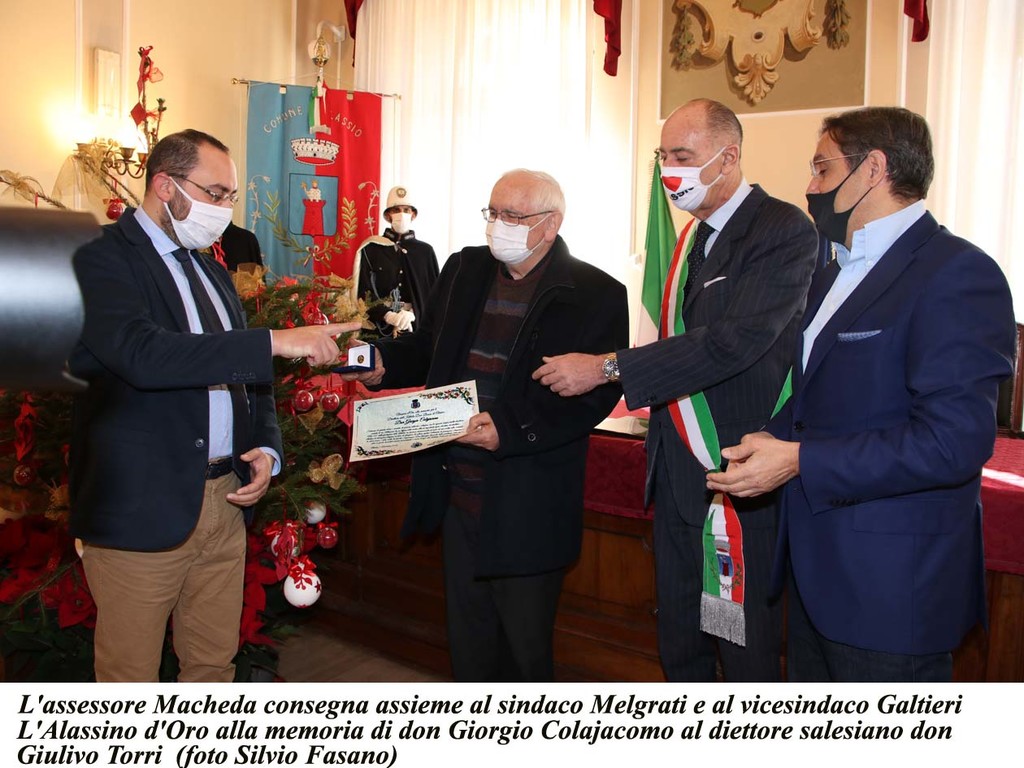 L’ALASSINO D’ORO ALLA MEMORIA 2020 E’ CONFERITO A DON GIORGIO COLAJACONO, direttore dell’Istituto Don Bosco di Alassio, salesiano di grande valore e umanità, di spessore culturale e religioso, con lo sguardo sempre rivolto al futuro, simbolo di un’Istituzione che ha diffuso nella nostra città un’importante opera educativa ed istruttiva. Nel 150° della fondazione dell’Istituto, un doveroso riconoscimento al ruolo da esso svolto nella comunità cittadina di educazione religiosa ed etica, di istruzione, di cultura aperta e tollerante, di formazione e trasmissione di valori umani e civili, contro la povertà e l’ignoranza. Don Giorgio, stroncato dalla pandemia, certo sarebbe stato in grado di portare ancora rinnovamento e nuova energia all’Istituto salesiano di Alassio.