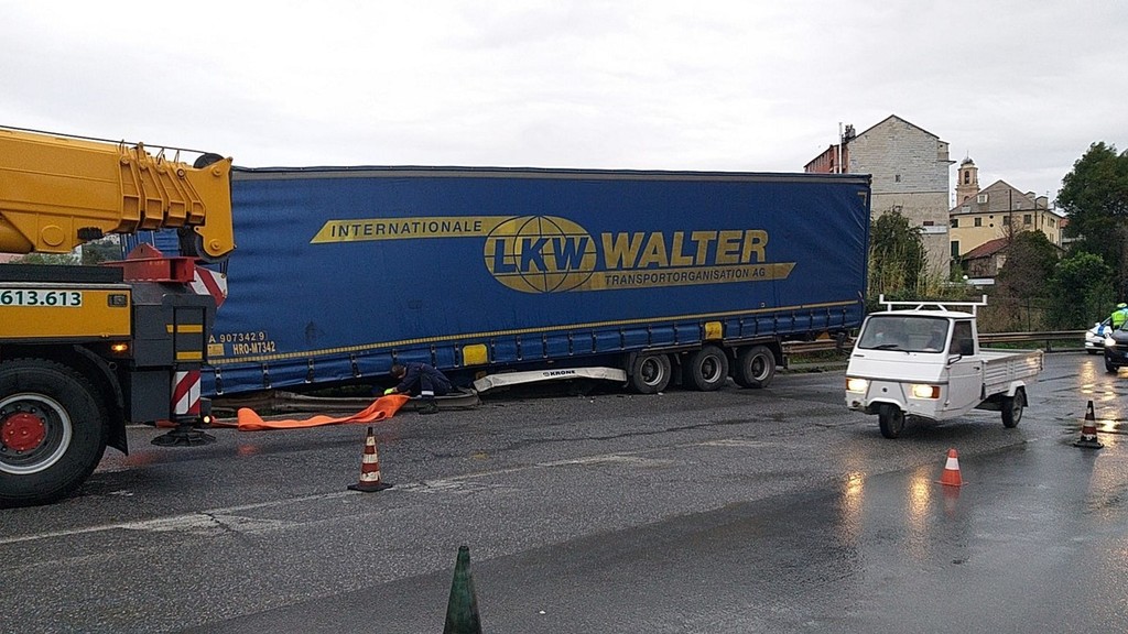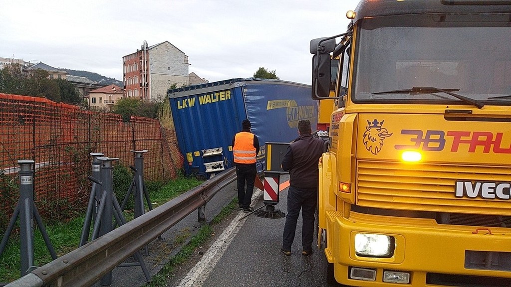 Savona, autoarticolato perde rimorchio in corso Svizzera: disagi al traffico (FOTO)