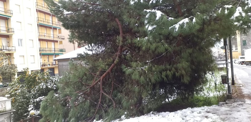 Questa mattina sono diversi i rami crollati a causa della violenta nevicata, del forte vento e del gelicidio a Celle Ligure.