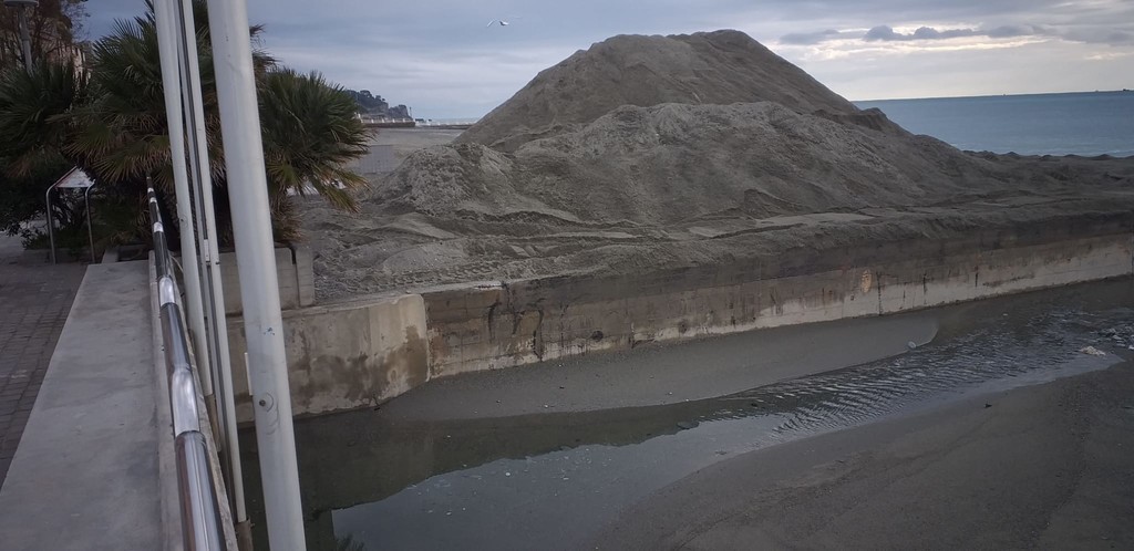 Sulla spiaggia infatti sono state accumulate diverse pile di sabbia, tolta proprio per scongiurare il rischio allagamento nel centro del paese.