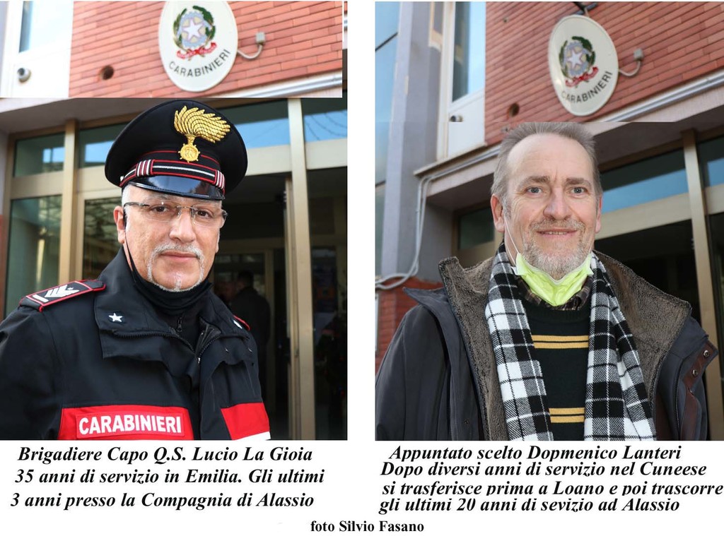 Lasciano il servizio attivo, dopo una lunga permanenza nell’Arma dei Carabinieri, il Luogotenente Giovanni Cerruti, Comandante della stazione di Villanova d’Albenga ed il Brigadiere capo Lucio La Gioia, veterano capo equipaggio della radiomobile della Compagnia di Alassio.
