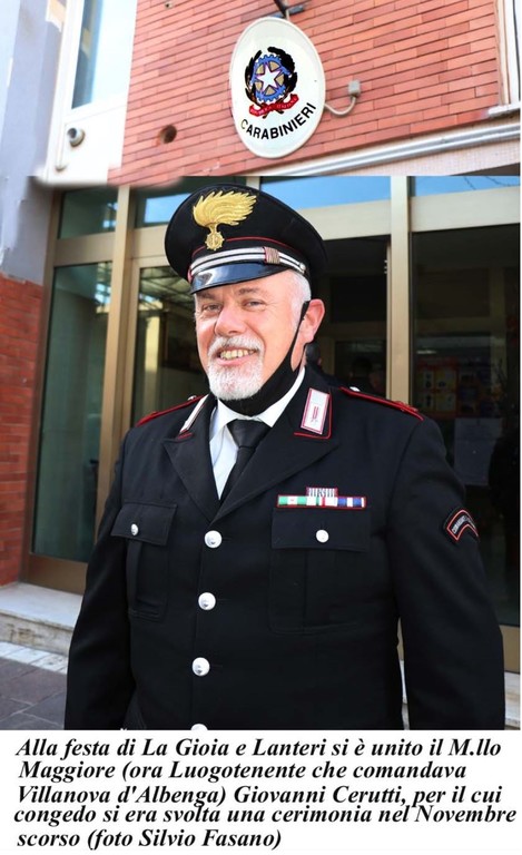 Il Brigadiere Capo Lucio la Gioia, classe 1964, si arruola nel 1983, frequenta la Scuola allievi di Benevento, al termine del corso viene destinato alla stazione di Correggio (RE), come carabiniere ausiliario e transita nel ruolo effettivo nel 1984. Nel 1987 viene destinato alla stazione di San Martino in Rio (RE), dove rimane fino al 2007, comandando, per un breve periodo, anche in sede vacante la stazione. Nel 1999 frequenta il corso di vicebrigadiere a Vicenza; viene trasferito, al termine del corso alla stazione di Correggio (RE) fino al 14 luglio 2009, data in cui viene trasferito al NORM della Compagnia di Reggio Emilia. Nel 2014 viene trasferito al nucleo investigativo del Reparto operativo del Comando Provinciale di Reggio Emilia. Nel giugno 2017 approda, al Nor della compagnia di Alassio, dove conclude oggi, 31.12.2020, il suo ultimo giorno di lavoro come capo equipaggio. Anche oggi il suo “storico” autista con cui ha condiviso gran parte del suo servizio alla radiomobile, Appuntato Giuseppe Cosentino, non ha voluto mancare per porgere un caro saluto al collega Lucio.