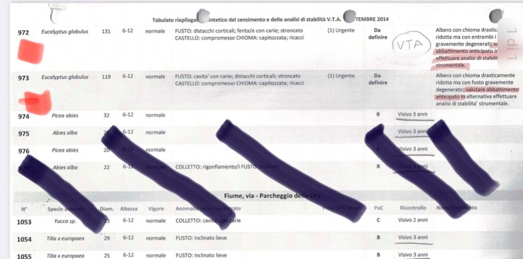 "Ogni volta che si lavora sul campo si parte da studi e valutazioni derivanti da ragionamenti e confronti. Nel 2014 è stata avviato per la prima volta un importante censimento delle nostre alberature, necessario ad effettuare valutazioni , da seguire nel tempo, su base pluriennale. Dal 2015 son stati avviati i monitoraggi su tali alberature con schede tecniche prodotte dagli agronomi incaricati e perizie ad hoc che potessero fotografare lo stato di salute di una determinata pianta" prosegue.