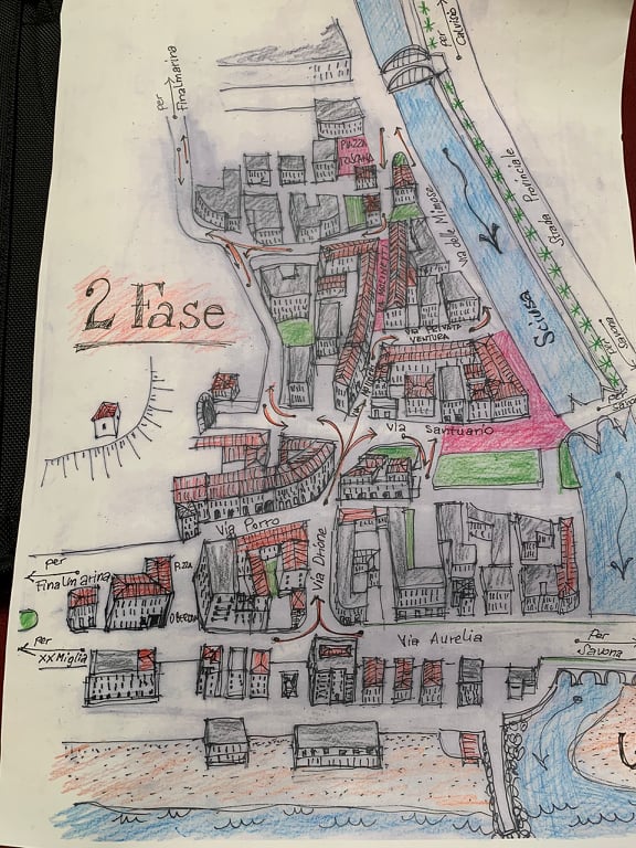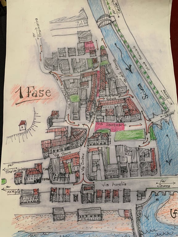 Nella seconda fase, e in alternativa a quanto accadrà in "fase 1", verranno chiuse al transito la parte lato a mare di via Mimose e quella lato ponte di via Santuario, con doppio senso lungo la rampa tra quest'ultima e la piazza IV Novembre lato ponente.