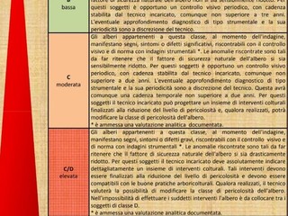 Qualora realizzati, il tecnico valuta la possibilità di modificare la classe di pericolosità dell'albero. Solo nell'impossibilità di effettuare tali interventi l'albero dovrà essere collocato tra i soggetti di classe D. Le piante in categoria C/D, a differenza di quanto sostiene il sommo Assessore, proprio per l’inserimento entro tale classe possono essere salvate, con l’applicazione di un insieme di interventi colturali. Solo ed esclusivamente se questi non saranno possibili dovranno essere collocate nella classe D e quindi destinate ad un inevitabile e doveroso abbattimento.