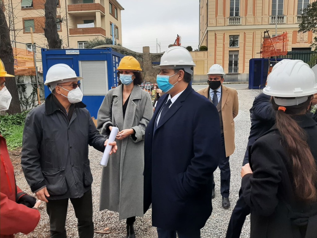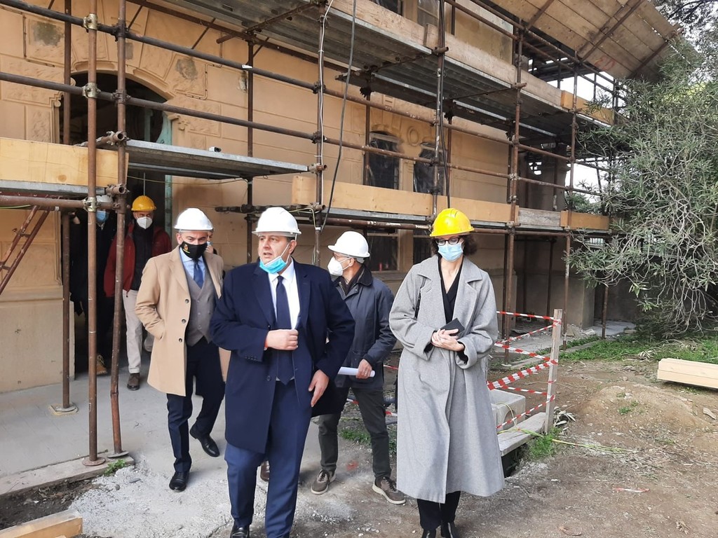Sopralluogo dei vertici regionali questa mattina nel complesso di villa Zanelli a Savona, dove sono in corso i lavori di recupero del gioiello liberty da circa 20 anni in stato di abbandonato che verrà trasformato in una struttura ricettiva con annesso ristorante, a disposizione dei cittadini savonesi e non solo nel 2022.