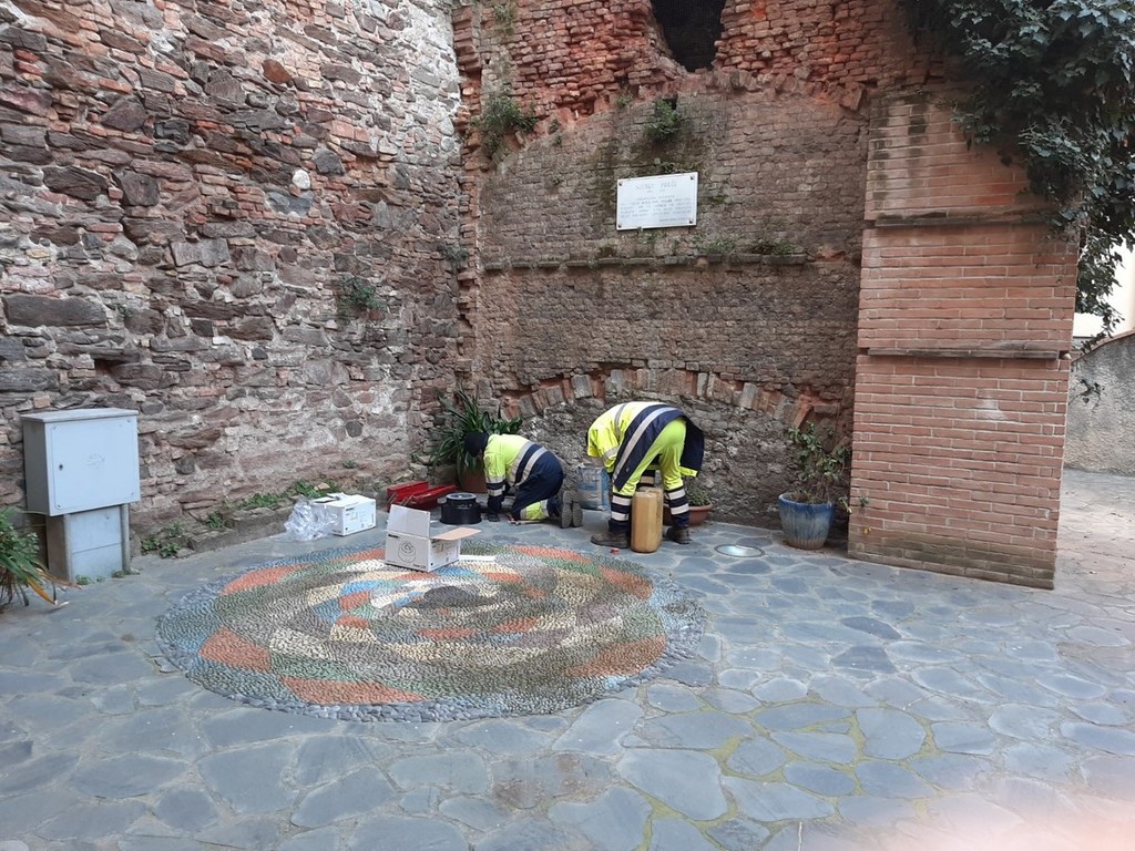 La messa in opera di 2 nuovi proiettori a terra in Piazza Poggi.