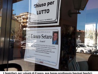 Un mare incurabile ha stroncato prematuramente la vita di Franco Setaro, 67 anni, noto esercente (Bar Peter Pan) di Albenga, via Dalmazia.