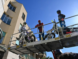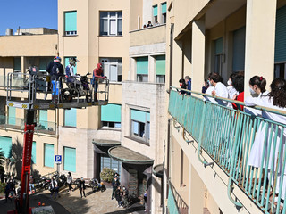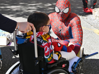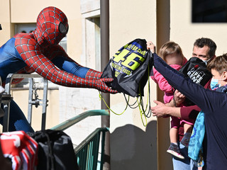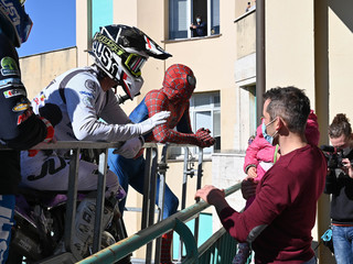 Dall’inizio della pandemia l’ospedale è stato costretto a sospendere le visite di intrattenimento che allietavano i piccoli ricoverati all’interno dei reparti. È nata così l’idea di arrivare ai piccoli direttamente dalle finestre: una enorme gru ha issato il motociclista Vanni Oddera, accompagnato dal suo collega motociclista Maurizio Gerini e Mattia Villardita nei panni del supereroe Spiderman davanti alle finestre dei reparti di Clinica pediatrica, Nefrologia, Ematologia e Oncologia.