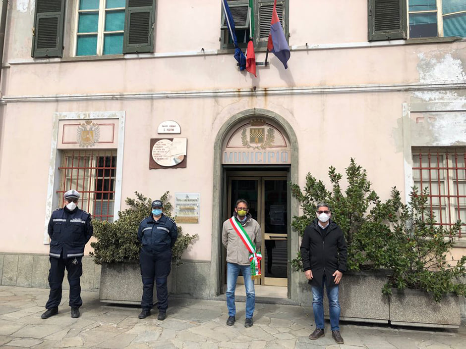 Il sindaco Paolo Lambertini, il vice sindaco Roberto Speranza, il comandante e un Agente della Polizia Locale hanno osservato il minuto di silenzio davanti al Palazzo Sandro Pertini, sede del comune.