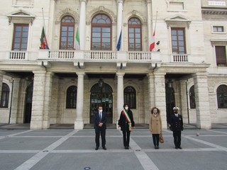 A Savona il sindaco Ilaria Caprioglio in piazza Sisto davanti al palazzo comunale insieme al Prefetto Antonio Cananà, al Questore Giannina Roatta e al Capitano di Vascello della Capitaneria di Porto Francesco Cimmino, si sono uniti nel minuto di raccoglimento.