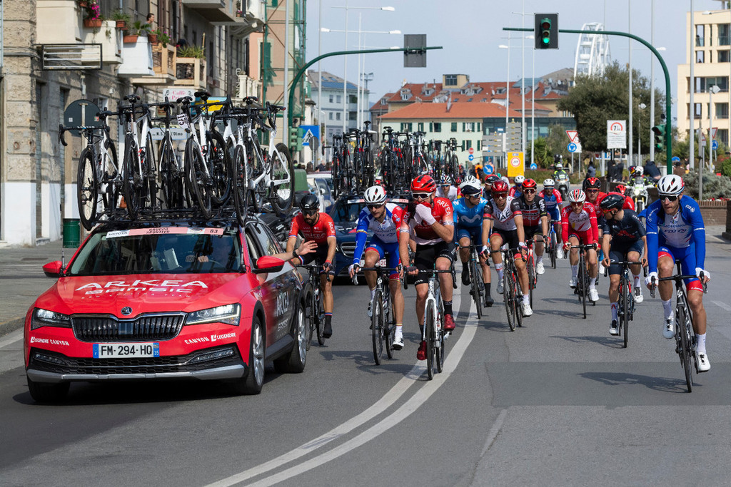 L'unico intoppo, fortunatamente senza gravi conseguenze, è stata la caduta dei ciclisti della Arkea Nacer Bouhanni e Thibault Guernalec nello svincolo per via N.S. del Monte a Savona, in un percorso alternativo che ha visto modificare il classico passaggio da corso Vittorio Veneto e una parte di via Nizza, a causa proprio degli interventi di restyling che riguardano la nuova pista ciclabile.