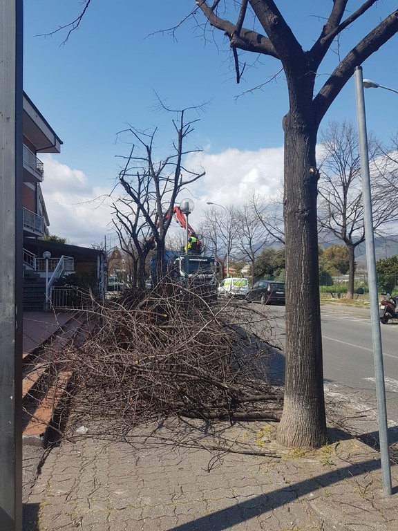 Continuano gli interventi di manutenzione del verde pubblico ad Albenga. In questi giorni si stanno potando gli alberi di Viale 8 Marzo, intervento atteso e richiesto da parte dei cittadini.