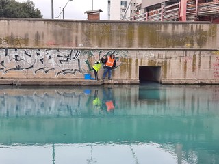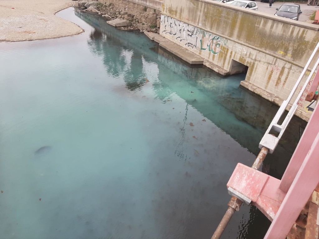 Savona, sversamento di una sostanza blu alla foce del Letimbro: Arpal al lavoro (FOTO e VIDEO)