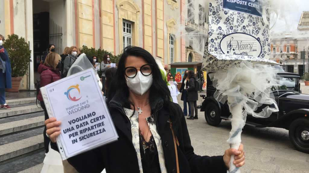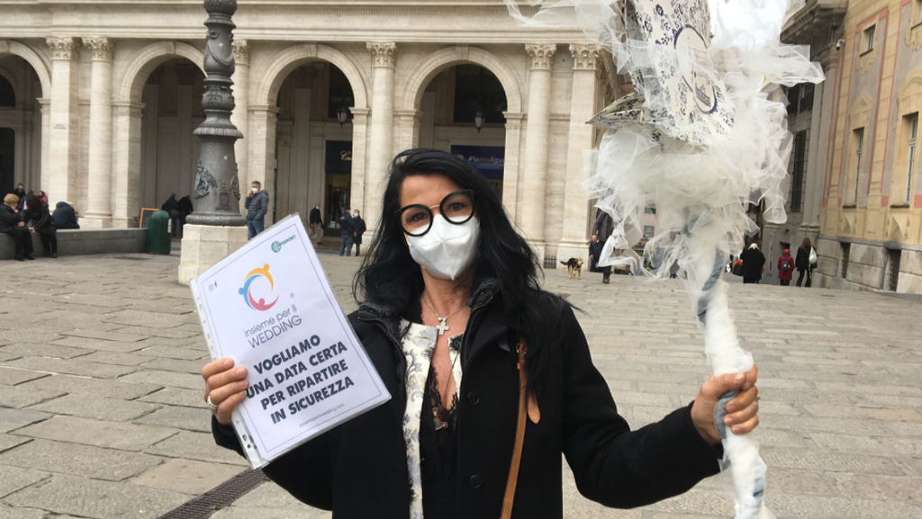 "Nel 2020 sono stati annullati l’85% dei matrimoni, alla cui organizzazione avevamo lavorato con fatica e professionalità, ritrovandoci così a dover riprogrammare decine e decine di cerimonie per cercare di tutelare sposi e fornitori", esordisce Ilaria Veggi, wedding planner, organizzatrice della piazza genovese insieme ad Antonella Calomino. "Ora vediamo ripartire le crociere, dove si canta, balla, beve e mangia proprio come ad un matrimonio, e non comprendiamo perché invece a noi non sia concesso ricominciare. Quello che chiediamo è, semplicemente, di poter lavorare, certe di poterlo fare in piena sicurezza, attraverso protocolli rigorosi e linee guida precise".