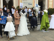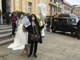 I manifestanti hanno raccolto l'appello del comitato promotore dallo slogan 'Insieme per il wedding', sostenendo l'iniziativa che rivendica misure di aiuto per il comparto, con il supporto di Confesercenti.