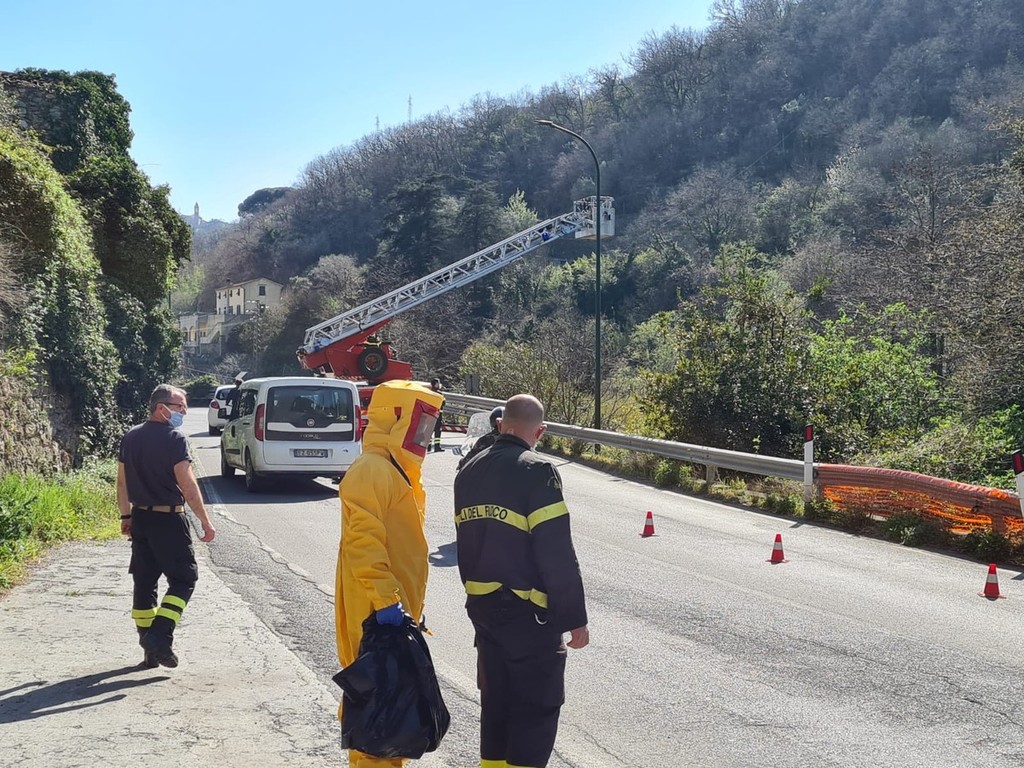 Intervento nei pressi della provinciale per Calice, nella frazione di Perti
