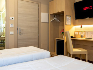 Adesso possiamo offrire ai nostri clienti un’ampia scelta di tipologie di camere standard e superior, matrimoniali, doppie, doppie ad uso singolo, triple o suite familiari con due camere comunicanti. Proprio queste ultime hanno riscontrato particolare gradimento da parte di famiglie che hanno potuto mantenere indipendente la camera da letto dei genitori da quella dei loro figli.
