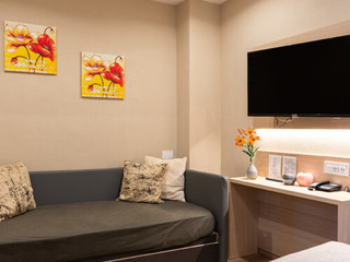 L’intervento è stato totale. Tutta la struttura è stata completamente studiata a dovere: sanitari, letti, arredi, pavimenti, muri, impianti di riscaldamento, raffreddamento, idraulici ed elettrici. È stato pensato proprio tutto al minimo dettaglio, si basti pensare che tutto l'hotel è controllato elettronicamente con sistemi domotici all'avanguardia che permettono di garantire un comfort dedicato al cliente senza eguali. Siamo intervenuti con attenzione anche sull’arredo: bagni con docce molto spaziose, specchi retroilluminati (con specchio ingrandente), bollitori dedicati in stanza e diverse prese elettriche standard ed usb.
