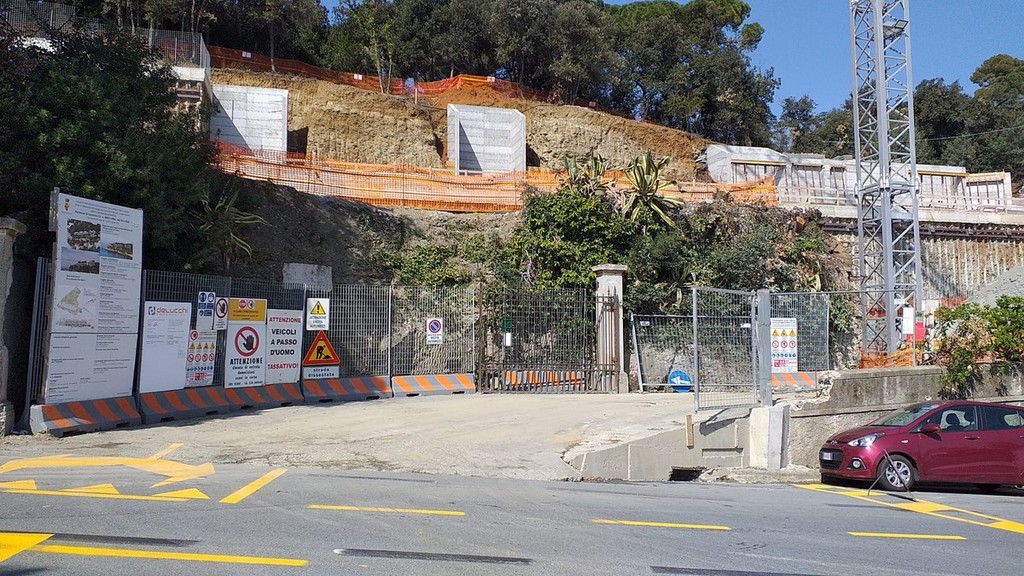 Nel frattempo sull'Aurelia è stata spostata la fermata degli autobus e le due corsie nei due sensi di marcia spostate lato mare.