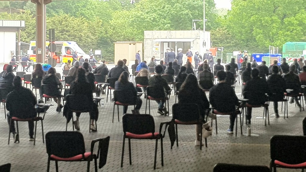 In coda davanti al mercato quilianese dopo la misurazione della temperatura e aver ricevuto una mascherina sono stati divisi a gruppi in ordine alfabetico e hanno ricevuto l'autocertificazione Covid. Poi nel salone distanziati potranno inizieranno la prima prova.