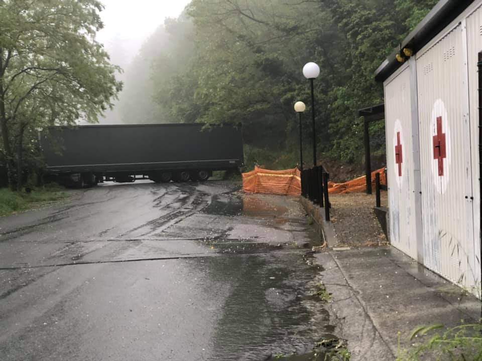 Tir di traverso a Stella San Martino, nei pressi del campo da bocce. L'allarme è stato lanciato questa mattina e la macchina del pronto intervento si è subito attivata.