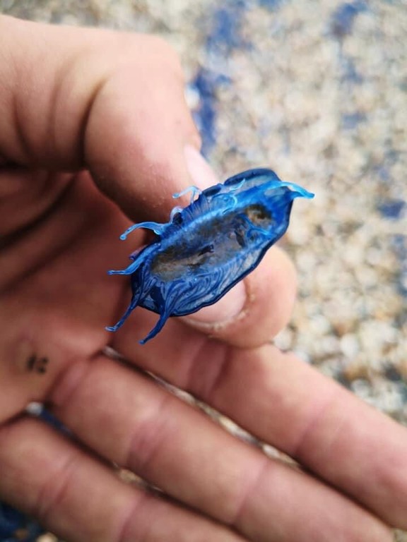 Loano, spiaggia tinta di blu grazie all'invasione delle "velelle"