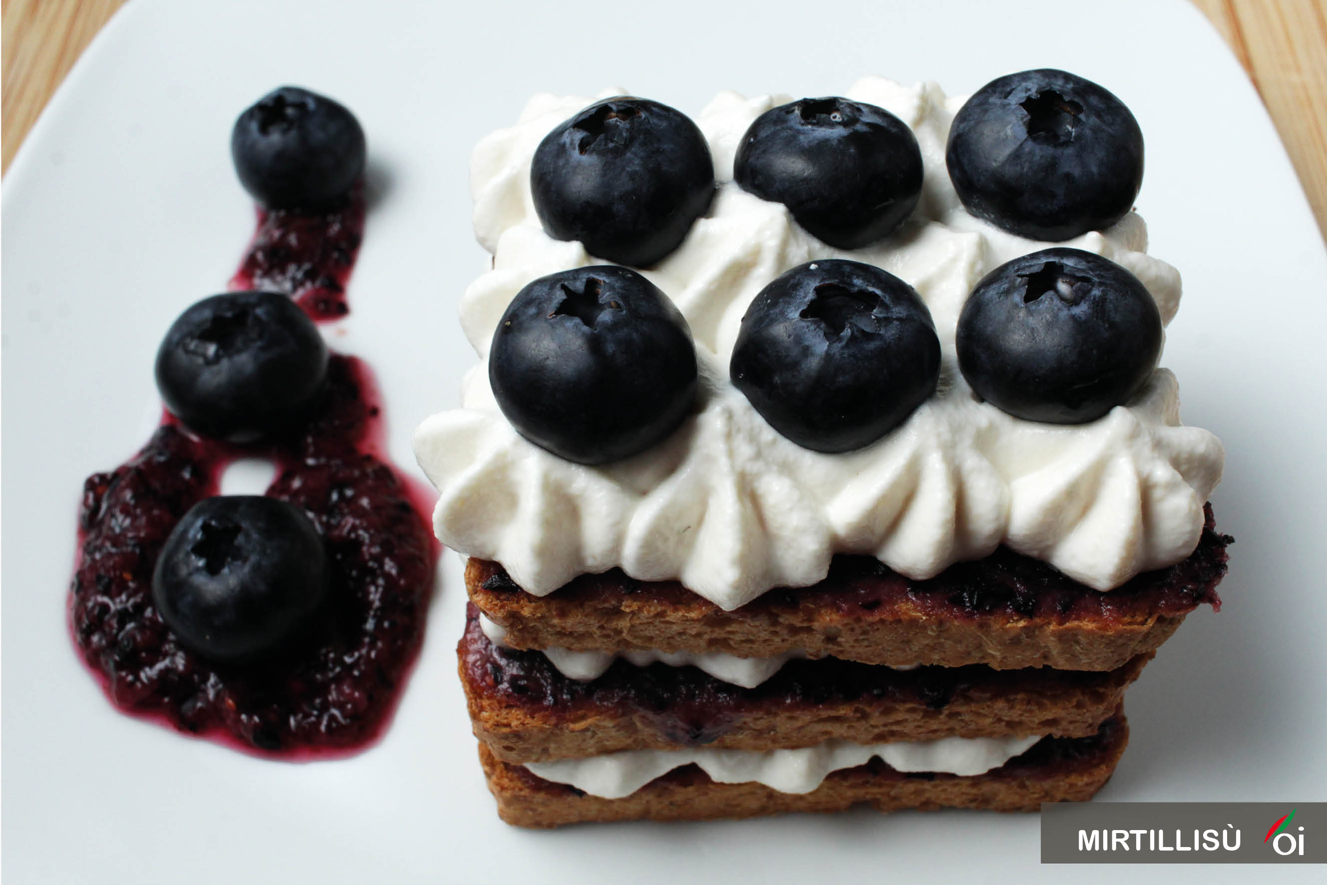 1.Frullate qualche mirtillo per ottenere un succo da utilizzare per inumidire le fette biscottate