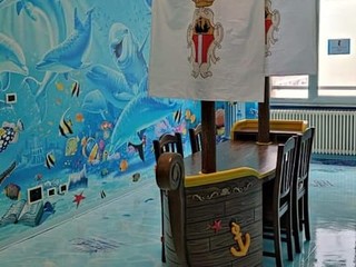L’opera è stata quindi completata con un pavimento che diventerà il fondale marino sul quale cammineranno i bambini e si troverà un tavolo a forma di veliero (sulla vela è stato stampato lo stemma di Savona) dove si potranno fare i laboratori.