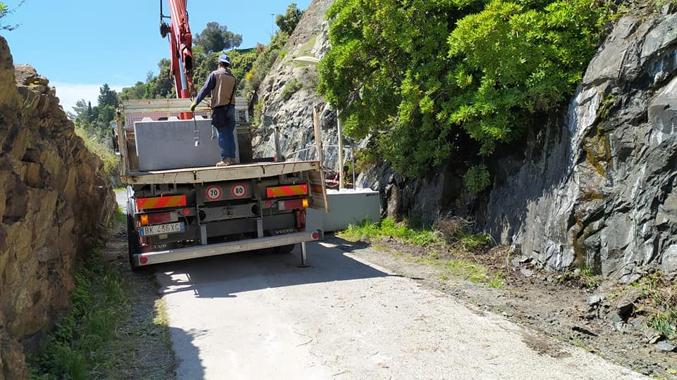 Questa mattina è iniziata la posa dei blocchi di cemento che consentirà di riaprire in sicurezza il tratto di Lungomare Europa a Varazze interrotto dalla caduta di materiale che si era verificato la settimana scorsa.