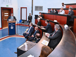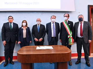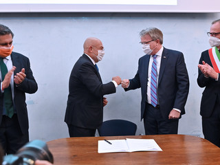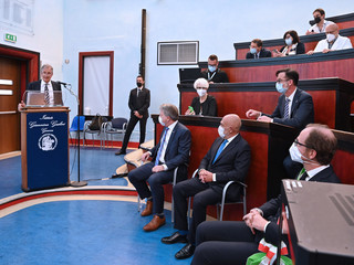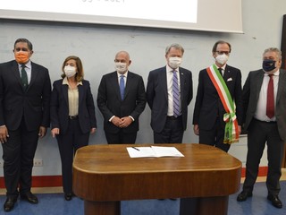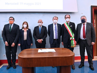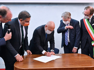 Al termine dei saluti istituzionali, il presidente del Gaslini Edoardo Garrone ha firmato l’accettazione ufficiale della donazione alla presenza del presidente della Regione Toti, del vicesindaco di Genova Nicolò e del console generale Needham.