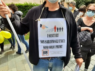 Dopo l'incontro con il Prefetto Antonio Cananà in piazza Saffi circa una centinaia di persone si sono riunite per protestare contro l'attuale situazione di precarietà del settore sanitario.