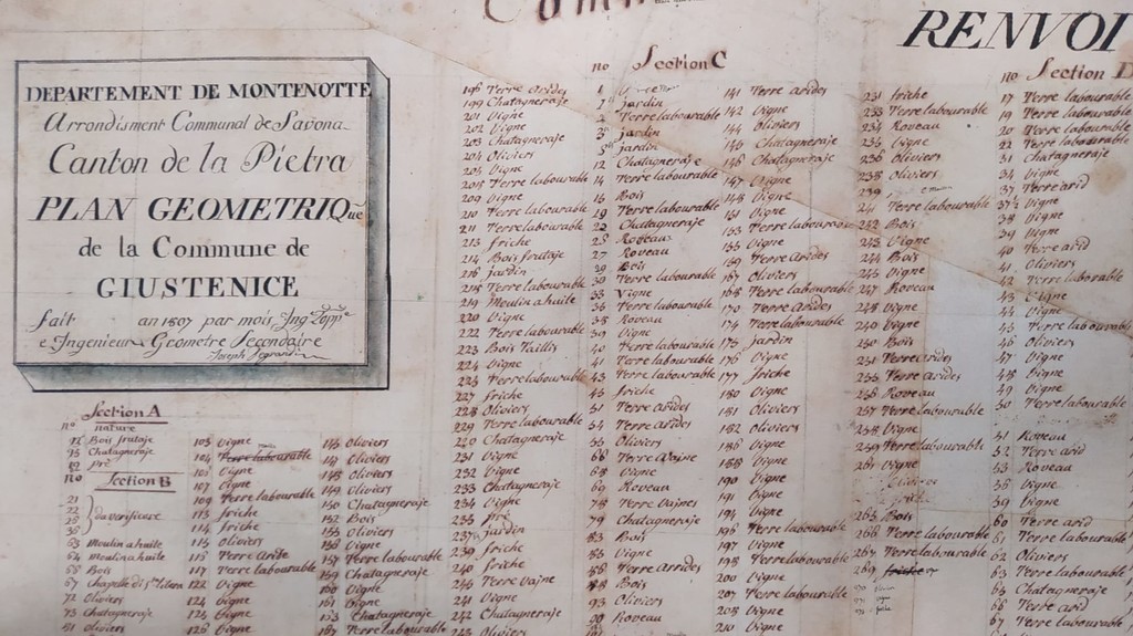 "Posizionata, nella Sala Consiliare del Comune di Giustenice, una copia del 'piano catastale napoleonico del Comune' datato 1807". A darne notizia è Mauro Boetto, sindaco di Giustenice, con un post sul proprio profilo Facebook.