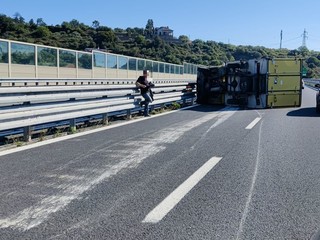 Furgone cappottato sulla A10: disagi alla viabilità tra Andora e Albenga (FOTO)