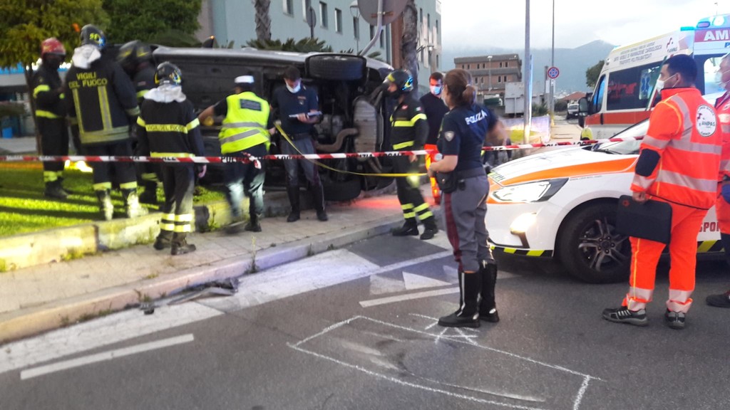 Albenga: perde il controllo dell'auto, si ribalta e scappa lasciando sul posto i passeggeri
