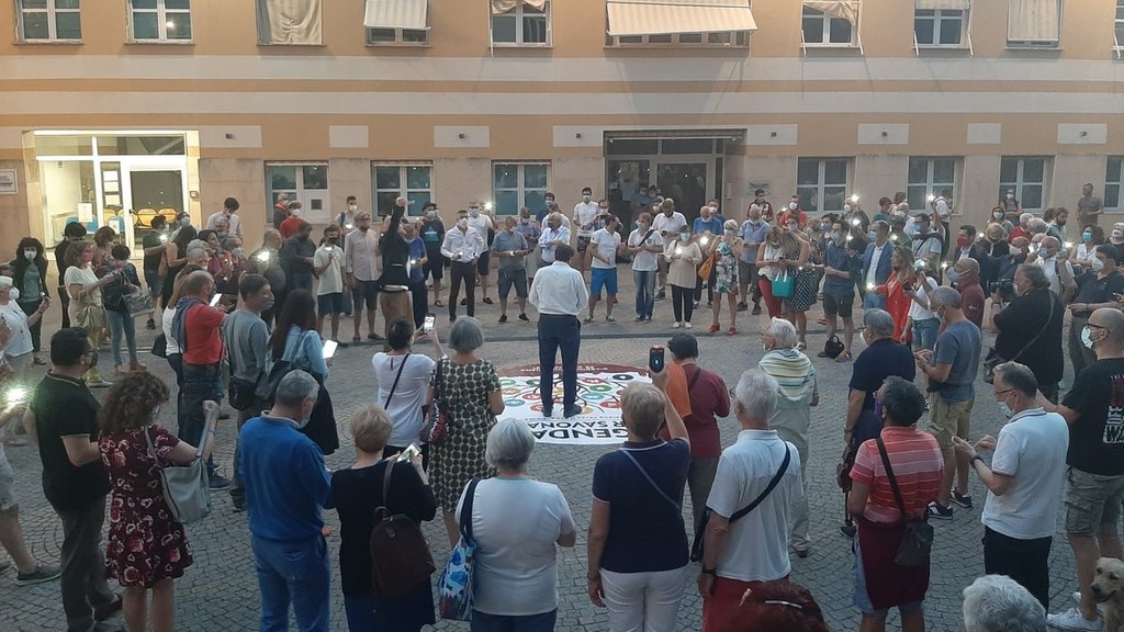 Russo durante la serata ha presentato le forze politiche e sociali che lo sostengono e con il suo gruppo, dopo le foto social con le mani, ha realizzato un flashmob creando un cerchio intorno al cartellone della lista "Patto per Savona" e con le torce dei cellulari è stata illuminata la serata in via Verdi.