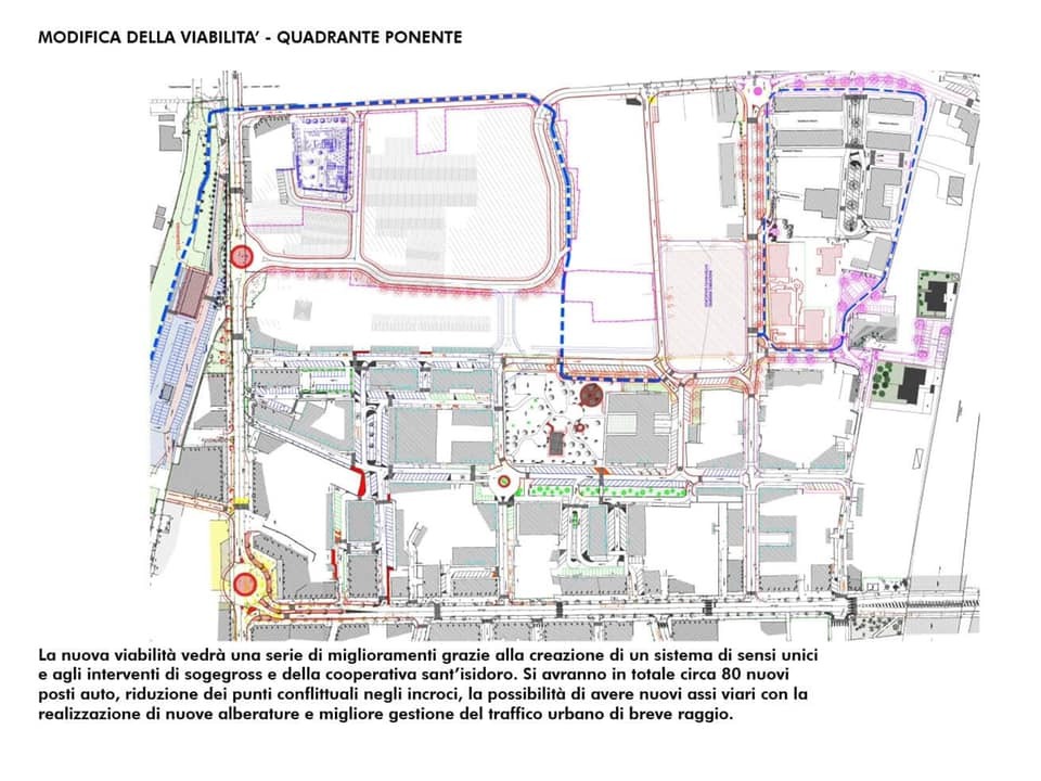 "Entro la metà del mese sarà aperto al traffico il prolungamento di via dei Levantino cui seguirà il completamento della nuova circolazione stradale nel quadrante ossia il senso unico su via dei Conradi e tutti i nuovi collegamenti - conclude Ottonello - Nelle riproduzioni grafiche allegate si possono vedere: nella prima, in blu la circolazione rivolta ai veicoli quindi alla clientela di Gros Market; in rosso, il percorso obbligato per i mezzi dei fornitori destinati allo stabilimento; nella seconda tavola, il quadro viario finale che si otterrà al termine dei lavori in via di completamento nel quartiere".