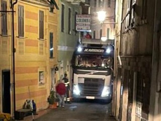 Tir incastrato tra i palazzi: vigili del fuoco mobilitati a Stella San Martino (FOTO)