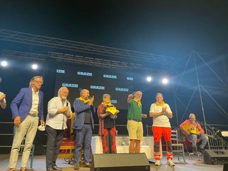 In una piazza Enzo Tortora a festa, con il tutto esaurito e in piena sicurezza, nel rispetto delle norme anti-Covid, alle 21 di questa sera i Fieui di Caruggi di Albenga hanno consegnato le due Fionde: l'edizione 2020 ad Antonio Albanese. Mentre quella del 2021 agli 'eroi' che hanno combattuto la battaglia contro il Coronavirus: il personale medico dell'ospedale Santa Maria di Misericordia e la Croce Bianca.