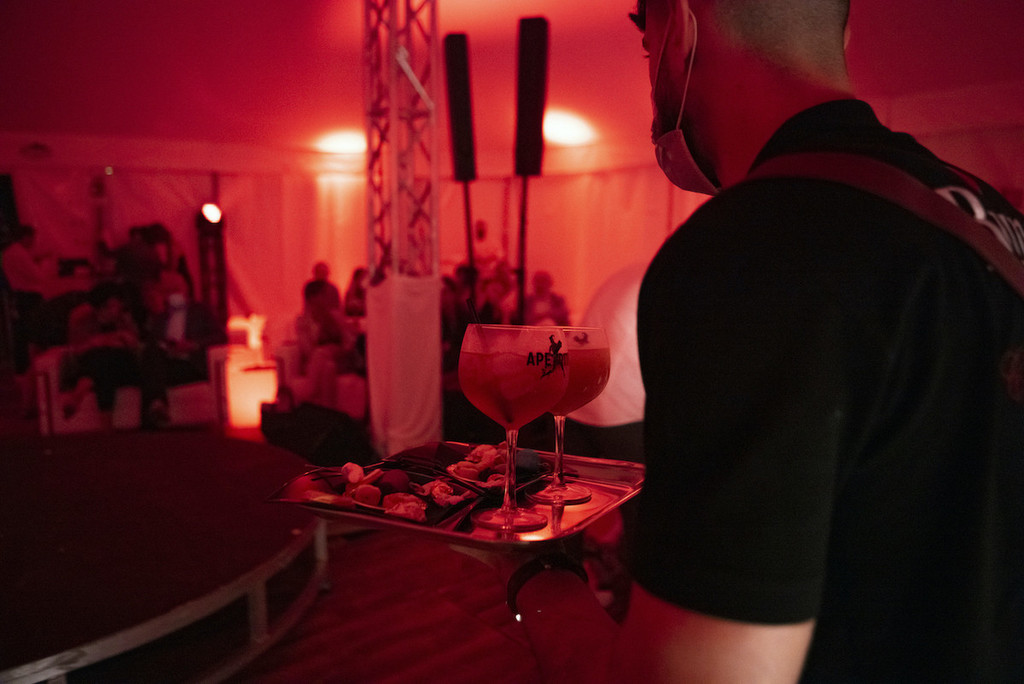 La belle vie accoglie il pubblico dalle 21,30 in un’atmosfera elegante, con arredi che richiamano un ambiente Lounge, tra divanetti e pouf di colore bianco e un servizio bar di grande qualità per la degustazione di drink. Tutto è allestito all’interno della tensostruttura a forma di chapiteau.