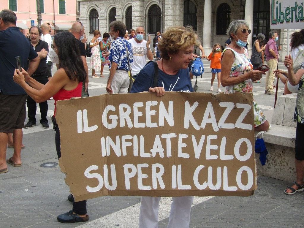 La protesta è cresciuta specialmente nei canali social come Facebook o Telegram e quest'oggi sono state circa 300 le persone scese in Piazza Sisto a Savona per dire no all'utilizzo del "Green Pass" come stabilito nei giorni scorsi dal Governo Draghi.