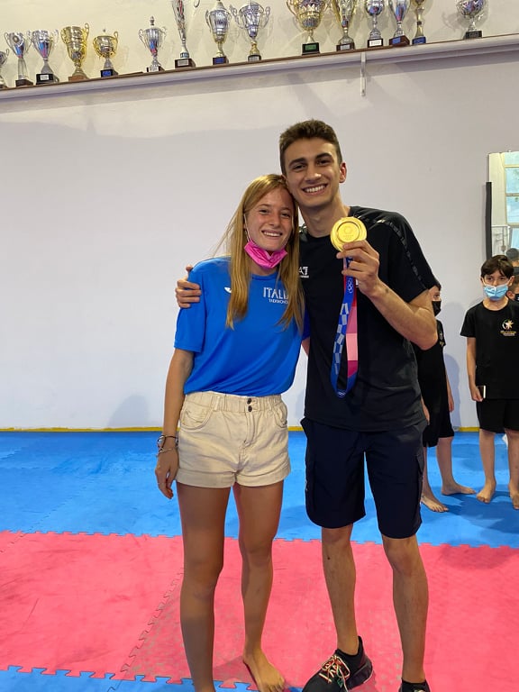 Proprio il ventenne campione pugliese di Taekwondo è tornato ieri nel suo paese d'origine e sul suo tatami ed è stato festeggiato da diversi atleti tra cui proprio la 20enne savonese.