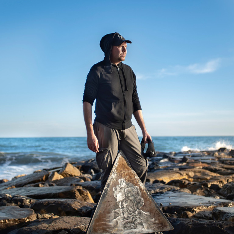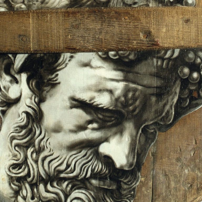 Su supporti vari e inusuali, come i coperchi di botti o schegge di metallo, l’artista dipinge ritratti intensi. Gli occhi dei suoi soggetti ci guardano sicuri, denunciando o ironizzando sulla nostra società, oppure ammiccano alla scultura classica.