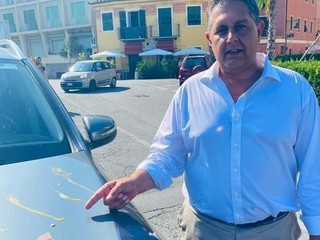 Uova contro l'auto di Toti lanciate da no vax durante una visita a Spotorno (FOTO)