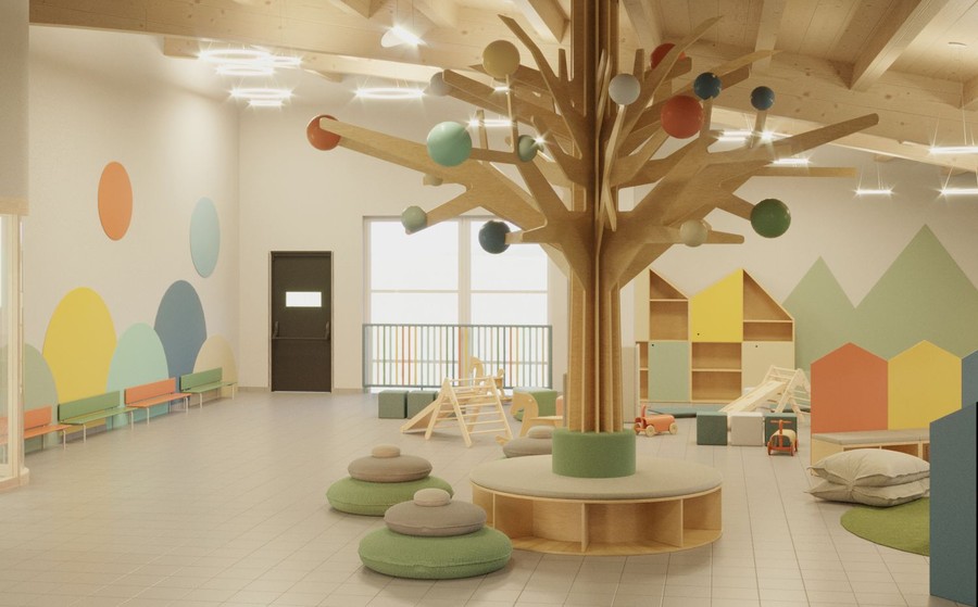 Il nuovo asilo potrà accogliere fino a 84 bambini nella massima sicurezza. Per la progettazione è stata utilizzata la massima accortezza per rendere gli spazi a misura di bambino: grande uso del legno per l'arredo, colori tenui e materiali tinta pastello per le pareti.