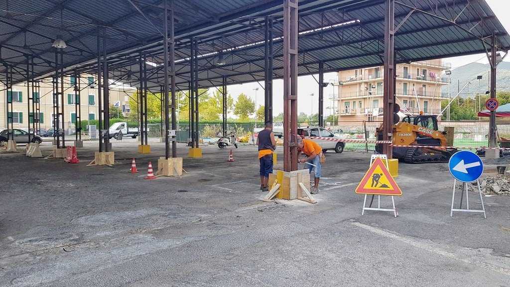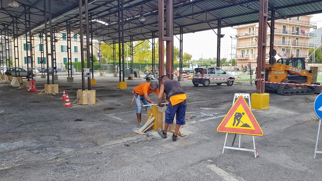 Continuano gli interventi manutentivi ordinari e straordinari ad Albenga. In particolare in questi giorni si sta procedendo con i lavori di consolidamento e riqualificazione manutentiva della tettoia di piazza Corridoni.